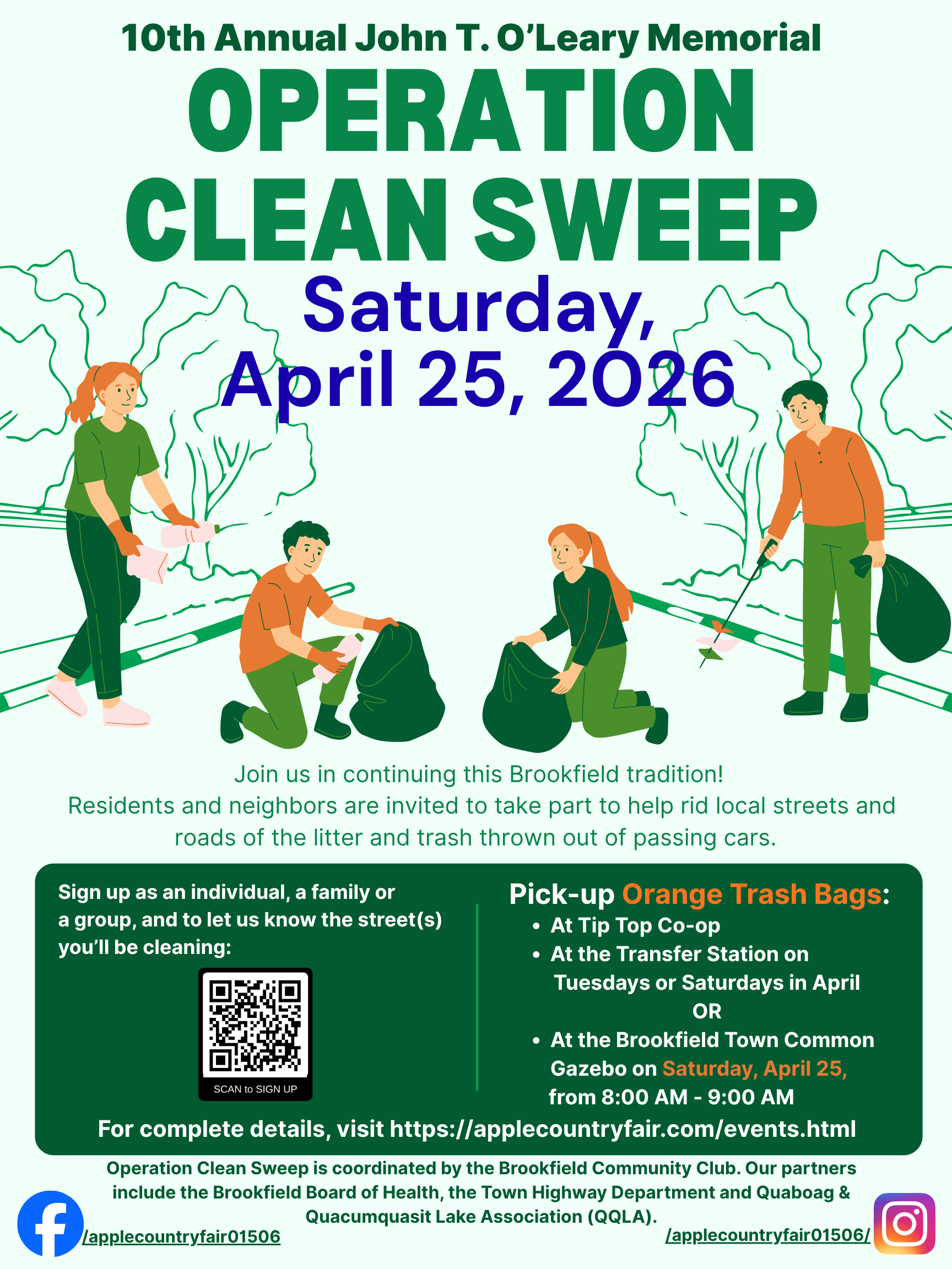 Operation Clean Sweep is coordinated by the Brookfield Community Club. Our partners include the Brookfield Board of Health, the Town of Brookfield Highway Department, and Quaboag & Quacumquasit Lake Association (QQLA).